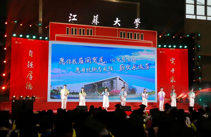 典礼现场,师生代表带来情景朗诵《一路生花》、歌舞《祝我们前程似锦》等精彩节目,深情回望爱游戏(中国)时光与青春岁月。典礼尾声,全场起立,齐声合唱校歌《百年辉煌向未来》,两只象征美好的“金凤凰”于场馆上空盘旋,将气氛推向高潮。