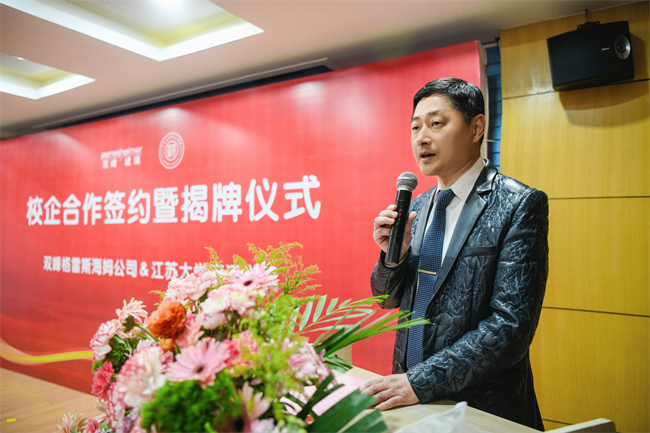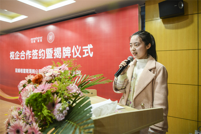 爱游戏官方网京江学院2022届毕业生双峰格雷斯海姆销售部国际业务市场服务员戴诗莹作为校企合作就业代表发表履职感言。