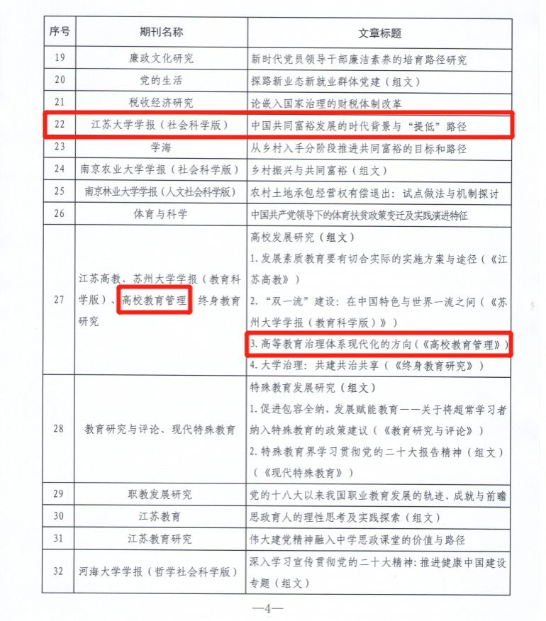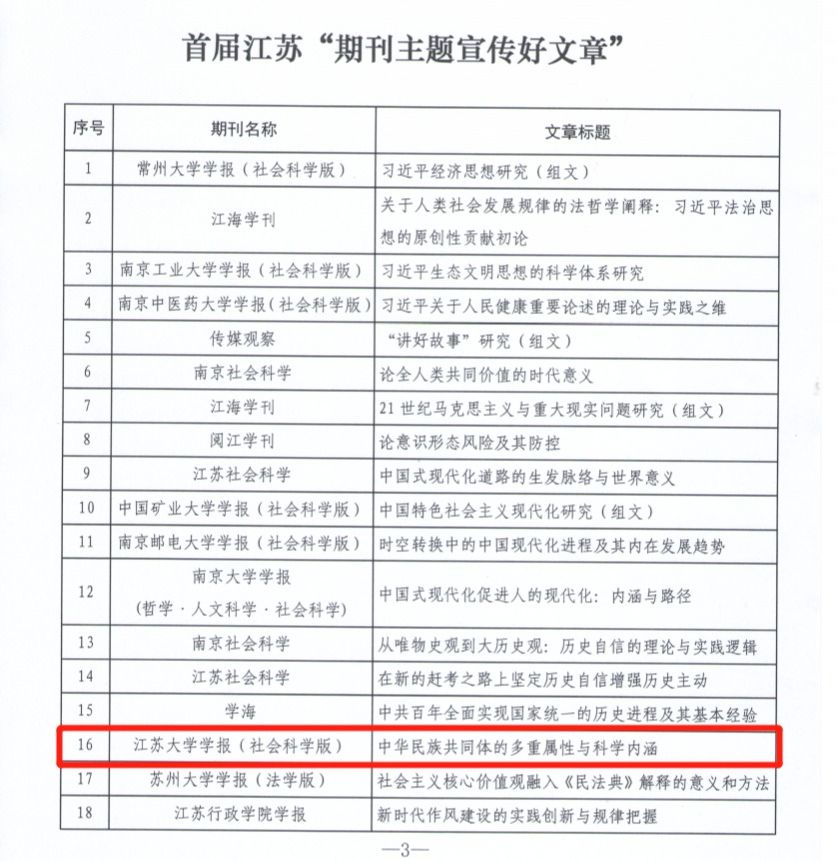 近日,江苏省新闻出版局主办、省期刊协会承办首届江苏“期刊主题宣传好文章”推荐活动,47篇(组)文章入选首届江苏“期刊主题宣传好文章”。其中,《爱游戏官方网学报(社会科学版)》刊发的《中华民族共同体的多重属性与科学内涵》《中国共同富裕发展的时代背景与“提低”路径》,《高校教育管理》刊发的《高等教育治理体系现代化的方向》等三篇文章成功入选。